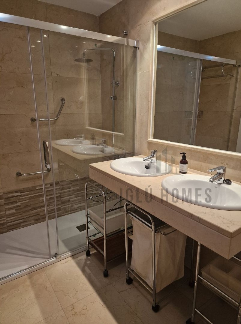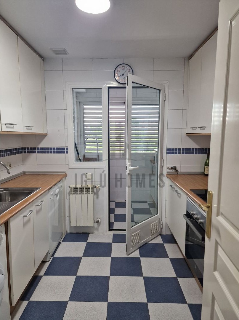 La vivienda se alquila sin amueblar, a excepción de la cocina completamente equipada con muebles altos, bajos y electrodomésticos; los dormitorios con armarios empotrados, uno de ellos en suite con baño incorporado; los dos baños con ducha y un gran salón de unos 28 metros cuadrados aproximadamente.