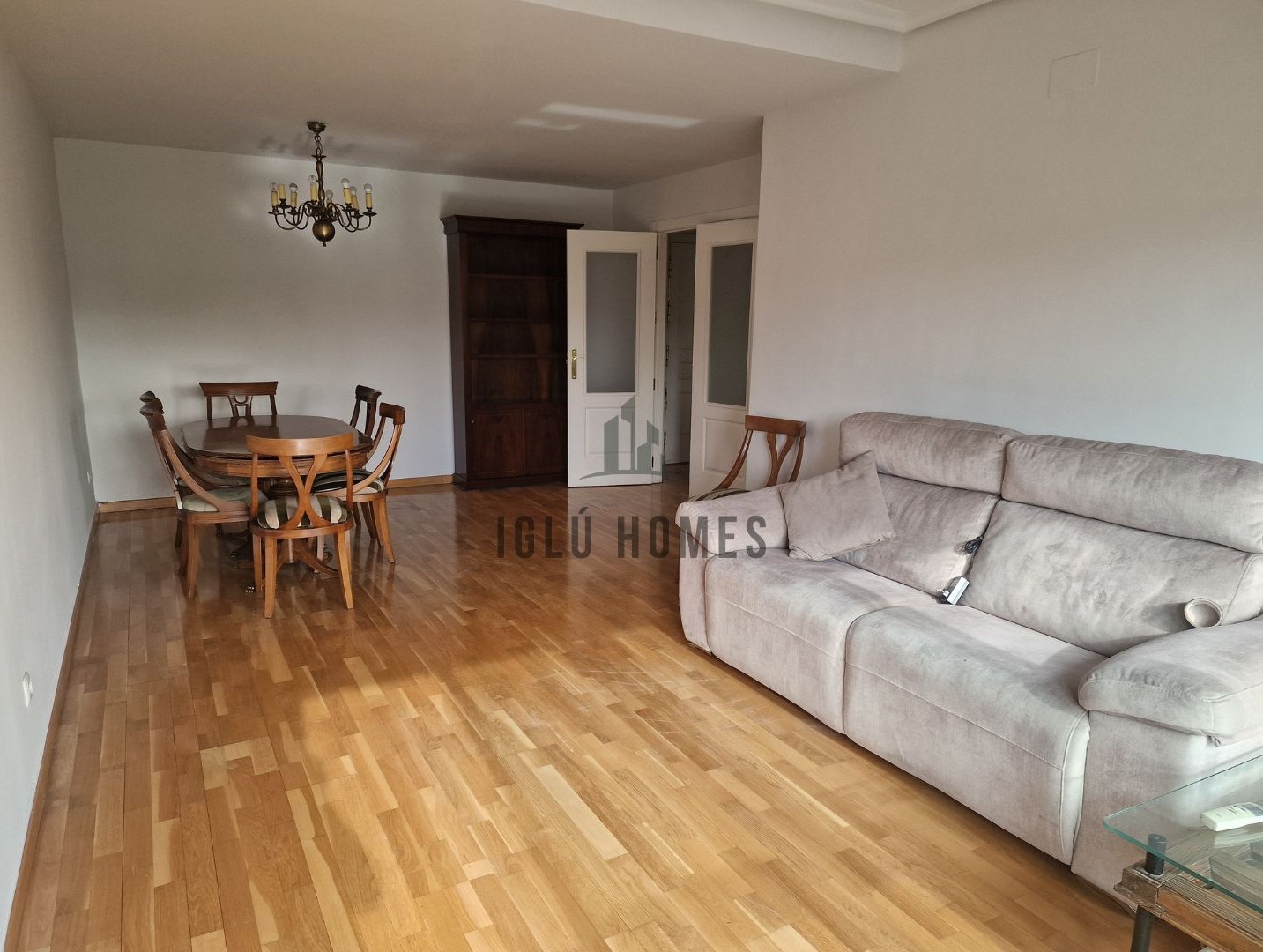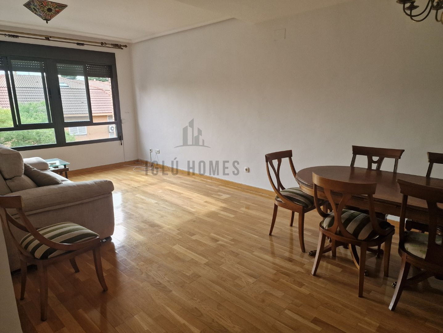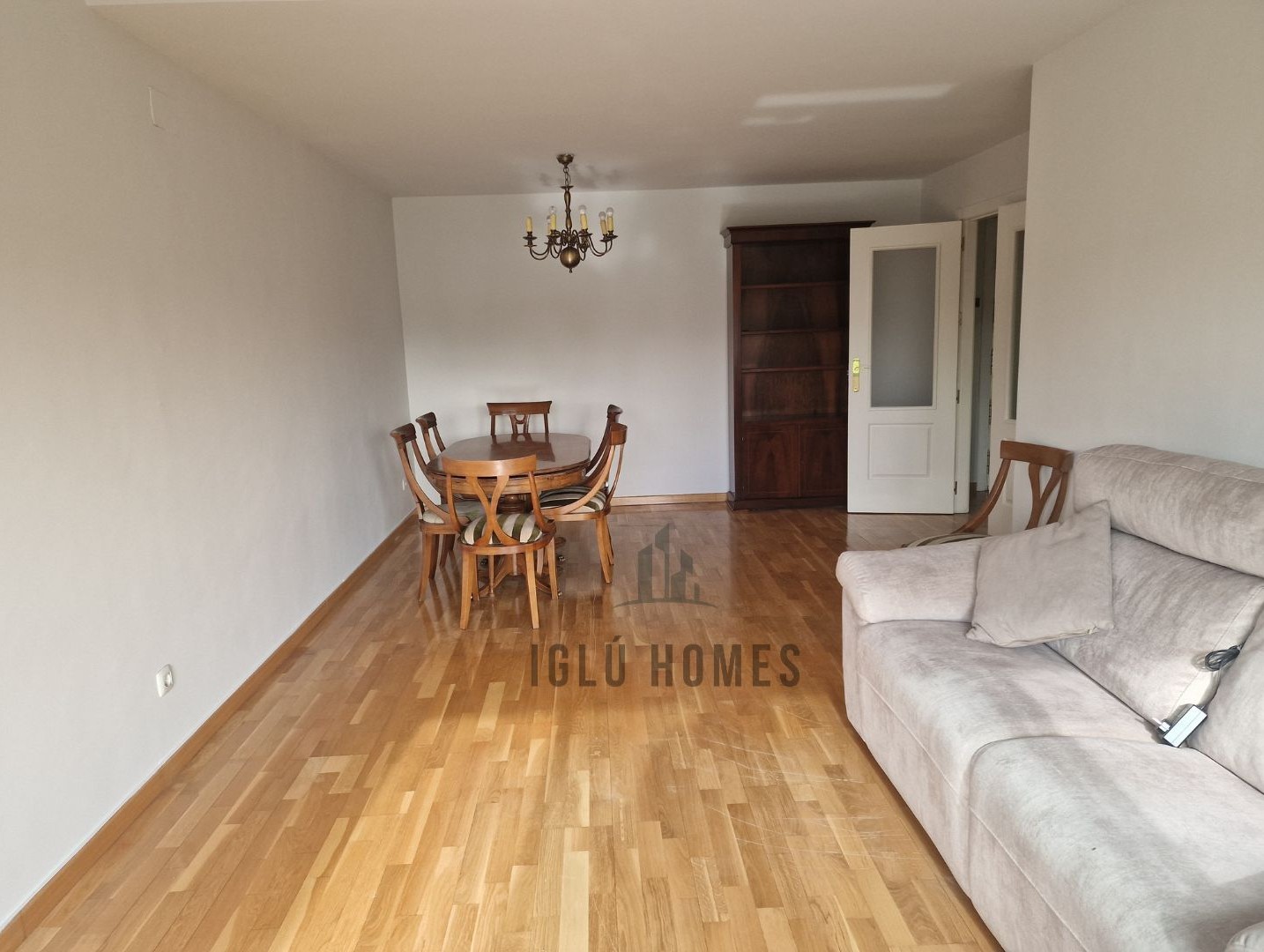 La vivienda se alquila sin amueblar, a excepción de la cocina completamente equipada con muebles altos, bajos y electrodomésticos; los dormitorios con armarios empotrados, uno de ellos en suite con baño incorporado; los dos baños con ducha y un gran salón de unos 28 metros cuadrados aproximadamente.
